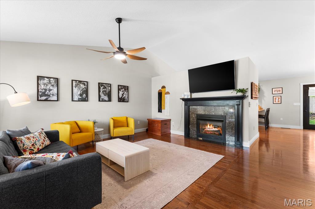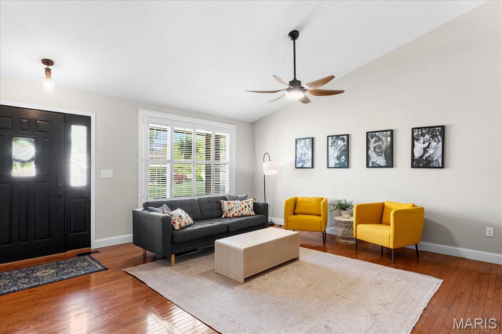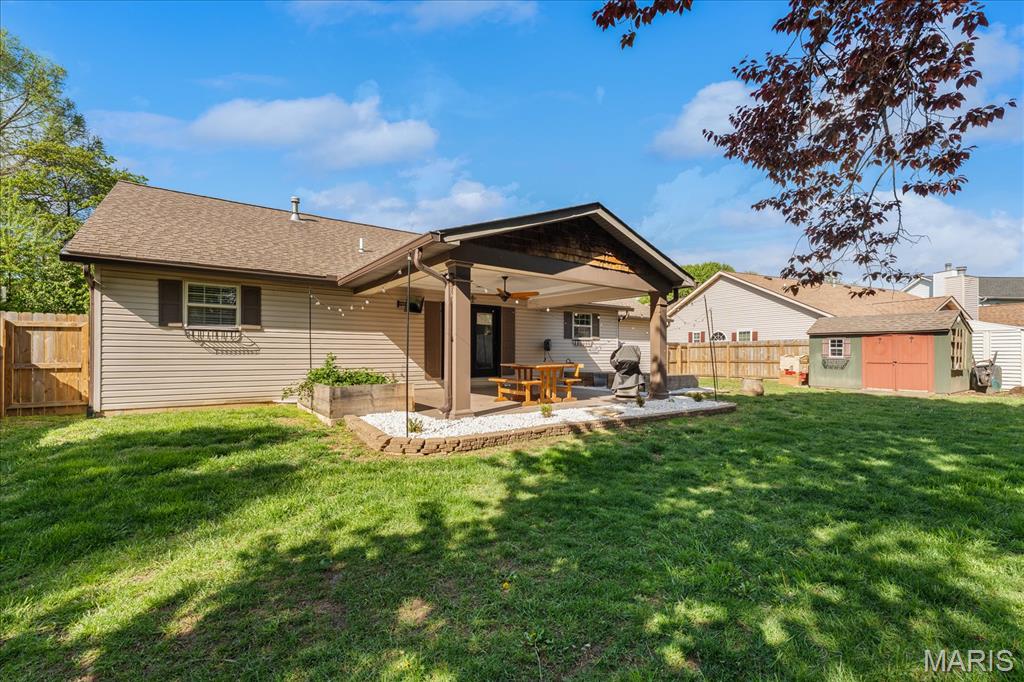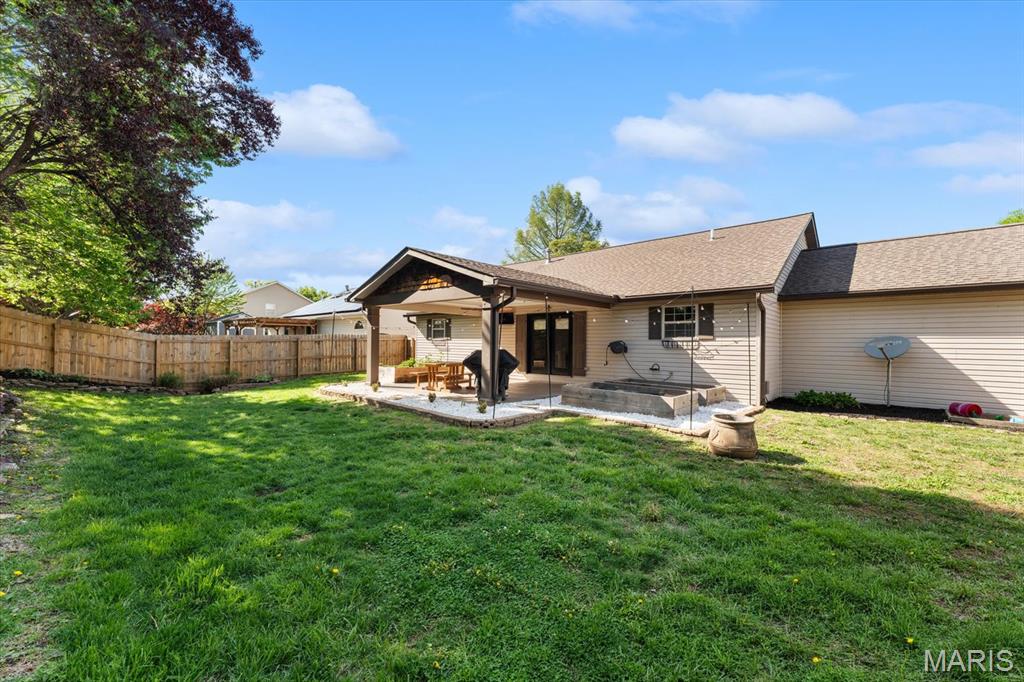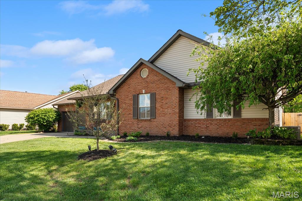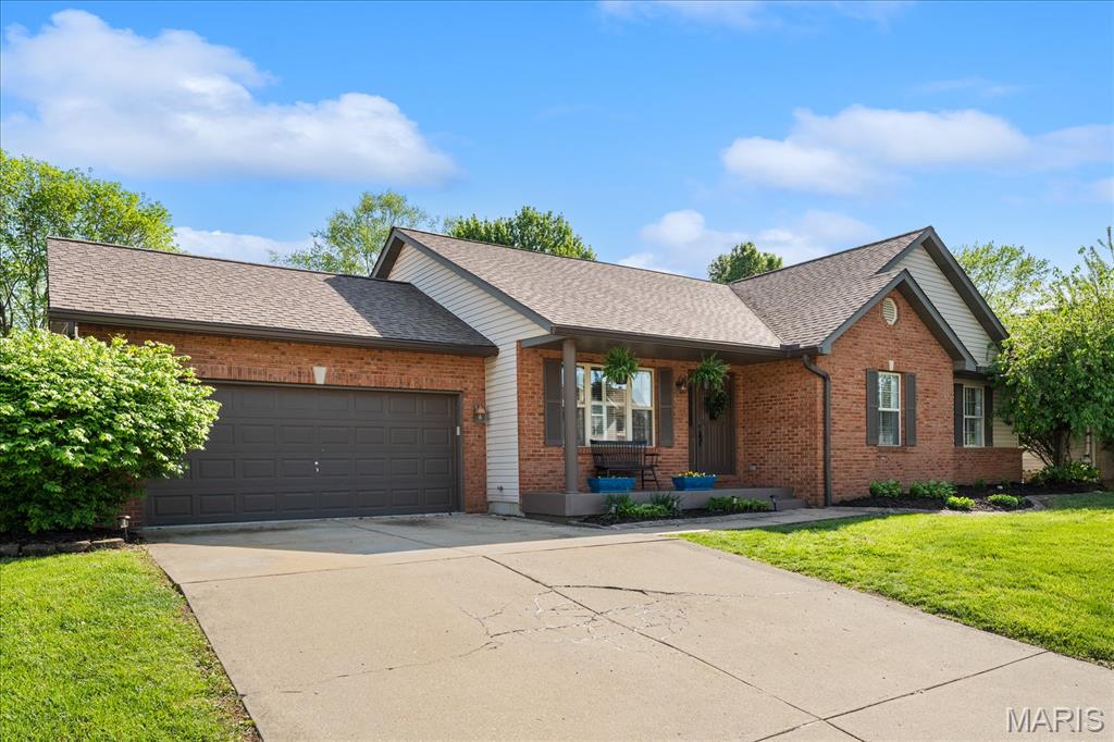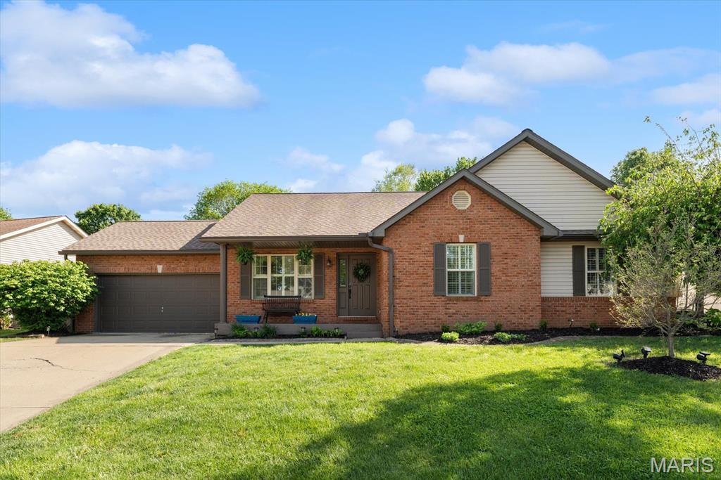 Move-in ready and loaded with upgrades, this beautifully maintained ranch offers the space, layout, and features today’s buyers are looking for! Step inside to an open floor plan with vaulted ceilings, wood floors, fresh paint throughout, and updated fixtures that give the home a clean, modern feel. The kitchen features granite countertops, stylish backsplash, stainless steel appliances, and flows seamlessly into the main living and dining areas—perfect for everyday living and entertaining. The main level includes 3 bedrooms and 2 full baths, including a spacious primary suite with ensuite bath and double sinks. Downstairs, the finished basement adds incredible versatility with a large rec room, office, bonus room, half bath, and plenty of storage space. Enjoy outdoor living in the fully fenced backyard with gorgeous landscaping and a covered patio complete with TV. Additional highlights include a 2-car garage, new A/C and water heater-2024. Conveniently located near Scott Air Force Base, shopping, and restaurants, this home checks all the boxes.