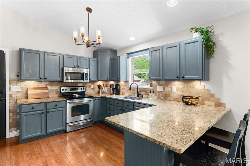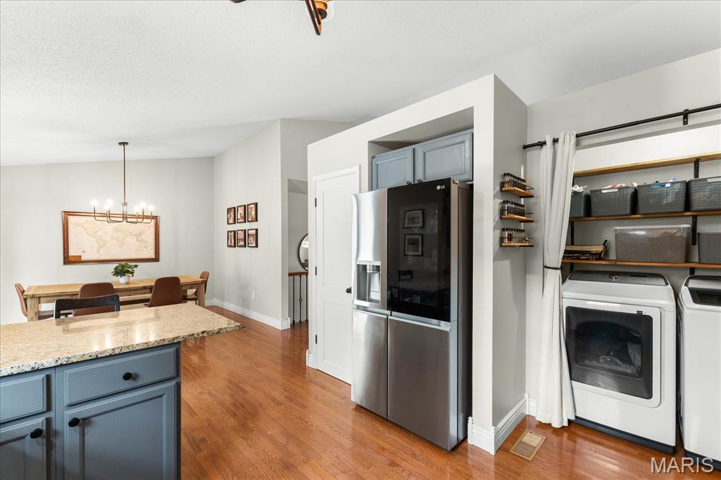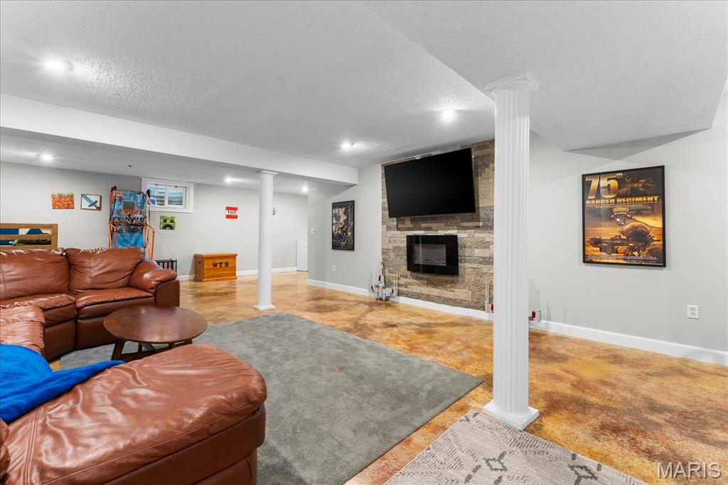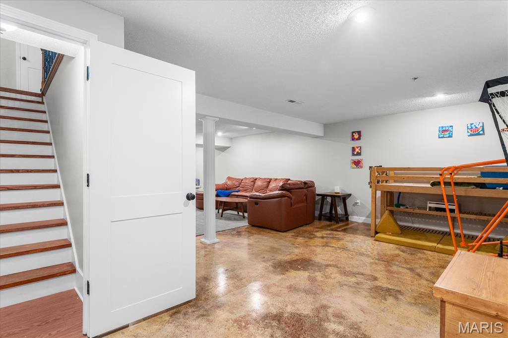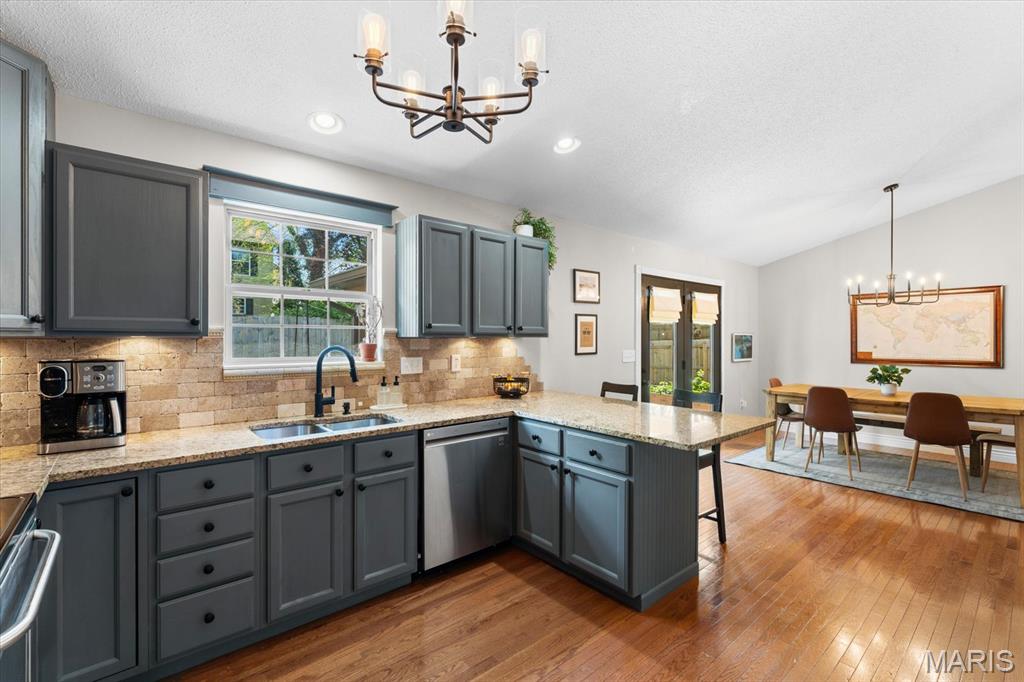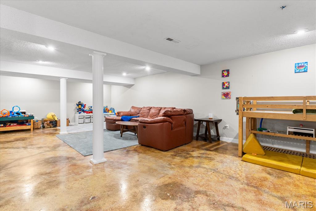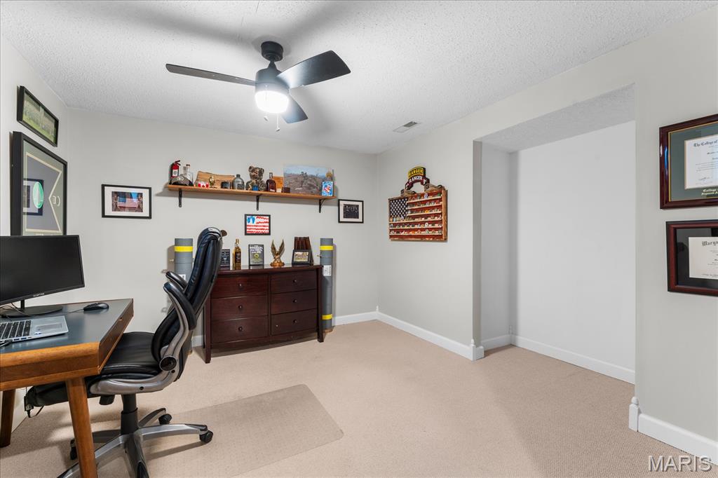 Move-in ready and loaded with upgrades, this beautifully maintained ranch offers the space, layout, and features today’s buyers are looking for! Step inside to an open floor plan with vaulted ceilings, wood floors, fresh paint throughout, and updated fixtures that give the home a clean, modern feel. The kitchen features granite countertops, stylish backsplash, stainless steel appliances, and flows seamlessly into the main living and dining areas—perfect for everyday living and entertaining. The main level includes 3 bedrooms and 2 full baths, including a spacious primary suite with ensuite bath and double sinks. Downstairs, the finished basement adds incredible versatility with a large rec room, office, bonus room, half bath, and plenty of storage space. Enjoy outdoor living in the fully fenced backyard with gorgeous landscaping and a covered patio complete with TV. Additional highlights include a 2-car garage, new A/C and water heater-2024. Conveniently located near Scott Air Force Base, shopping, and restaurants, this home checks all the boxes.