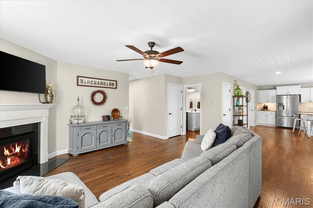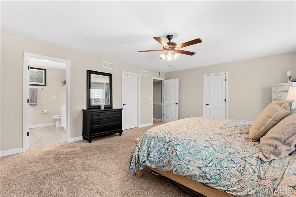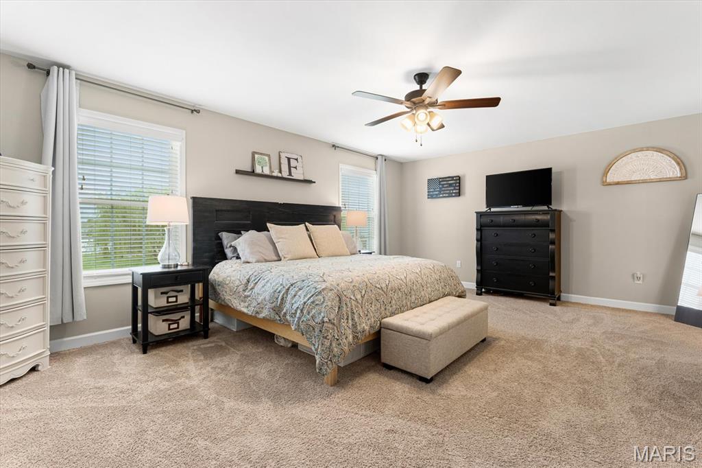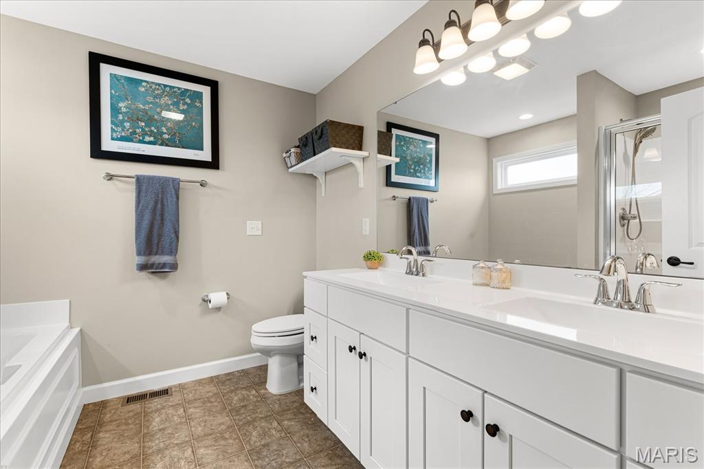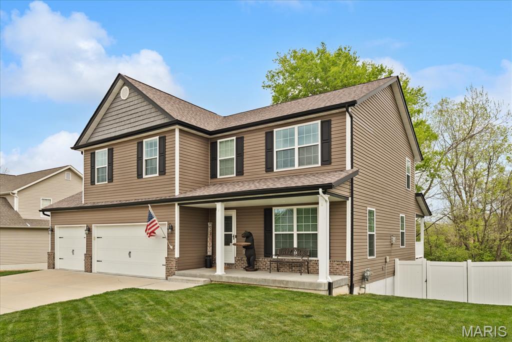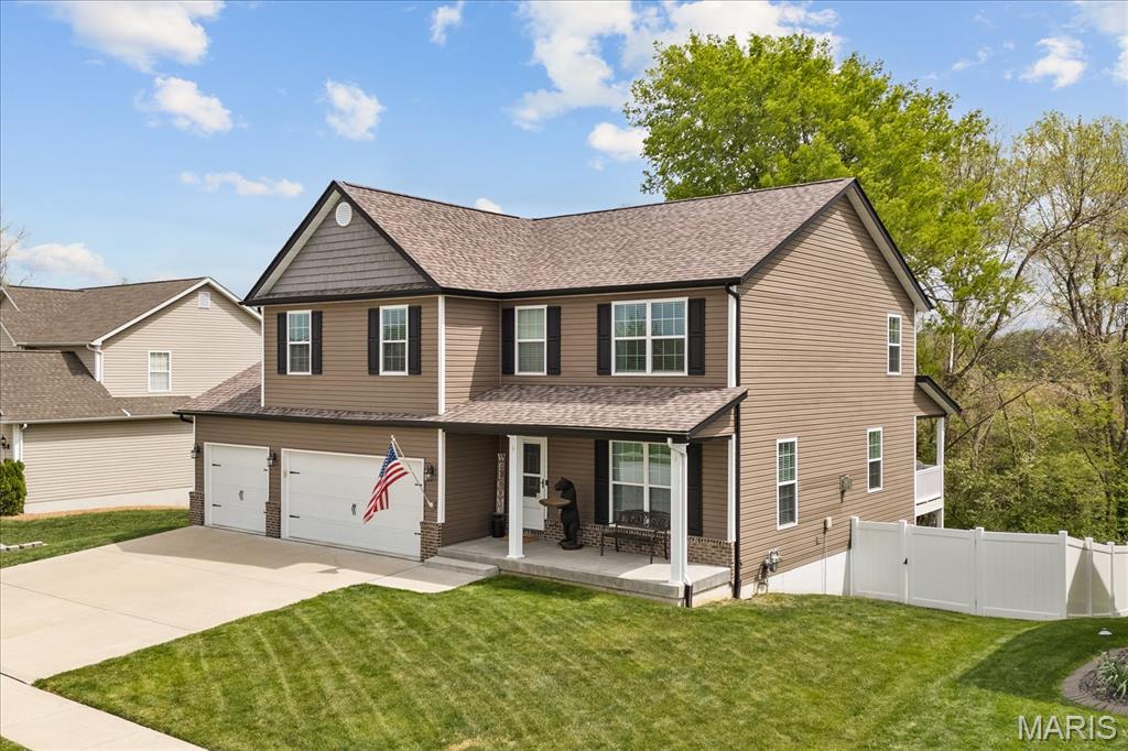 Considering new construction in O'Fallon, IL? Before you build, discover this move-in-ready 5-bedroom, 4-bathroom luxury home in the Milburn Estates. Offering significantly more square footage and value than similar local new builds, this residence is perfectly positioned on a premium lot backing to private woods with a fully fenced backyard and no rear neighbors. Main Level: The semi open-concept floor plan features wide-plank flooring leading to a versatile home office or formal dining room. The heart of the home is the upgraded kitchen, complete with granite countertops, a large butterfly island with bar seating, abundant amount of cabinetry, and a large walk-in pantry. Enjoy the serene, wooded views from your maintenance-free covered deck—the ultimate space for outdoor living. Upper Level: A loft area offers a flexible secondary living space, perfect for a playroom or home office. The truly oversized primary suite is a true sanctuary, boasting two separate walk-in closets and a spa-like en-suite bath with a soaking tub, separate shower, and double vanity. Three additional generously sized bedrooms and a conveniently located hall bath complete the second floor. Finished Walkout Basement: The lower level adds massive value with a finished walkout basement featuring a large family room, a 5th bedroom, a full bathroom, and ample storage. Prime O'Fallon Location: Located in the sought-after O’Fallon School District 90 & 203 (Marie Schaefer K-5, Fulton 6-8, and OTHS 9-12). This home offers a quiet setting with low traffic while being just minutes from Scott Air Force Base (SAFB), I-64, Memorial & St Elizabeths Hospitals, and downtown St. Louis. Enjoy easy access to O'Fallon’s best parks, shopping, and dining.