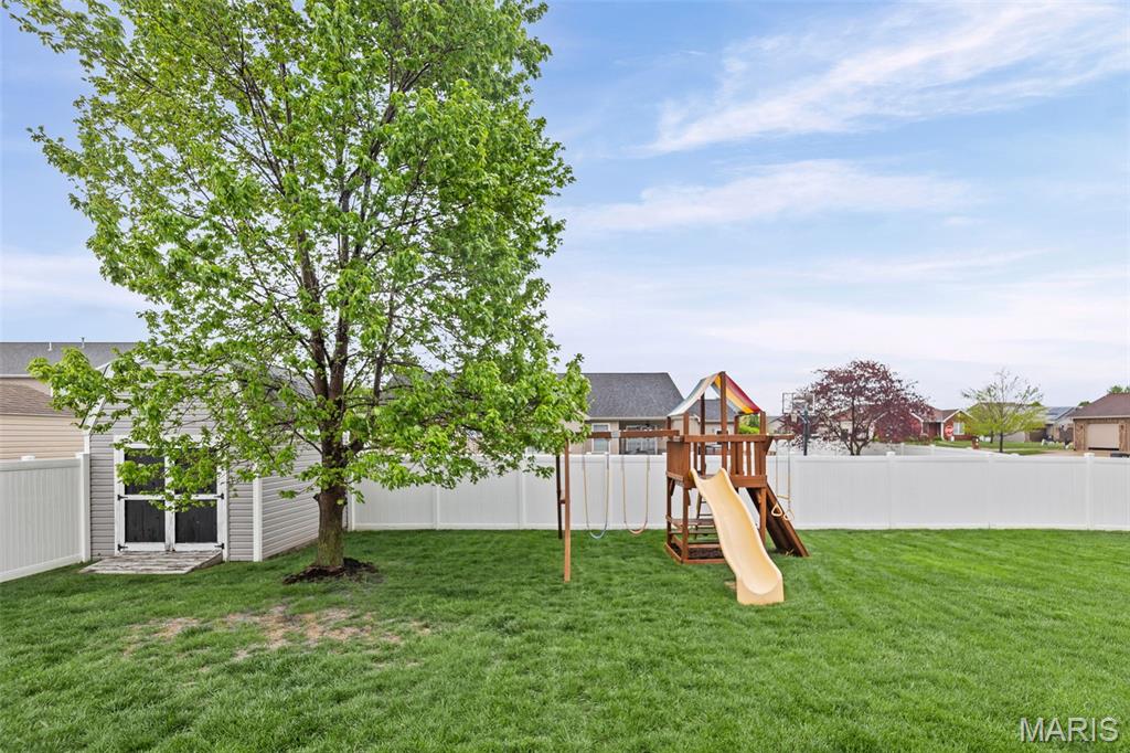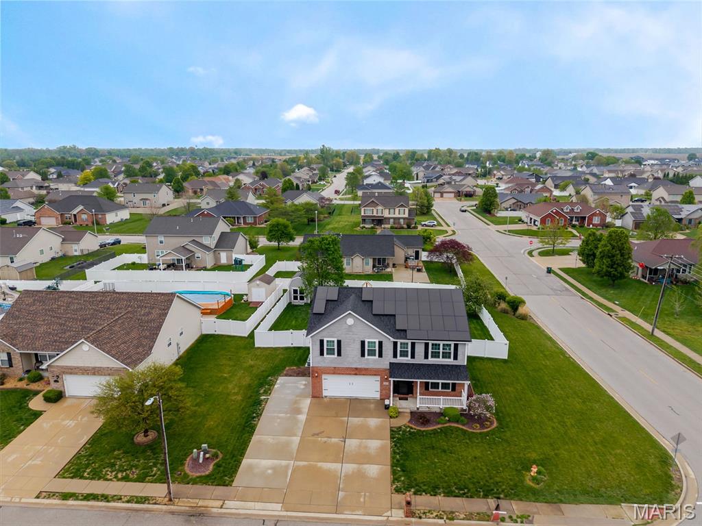 OPEN HOUSE SATURDAY, APRIL 18th 2 PM to 4 PM...Welcome home to 1265 Antique Lane in charming Mascoutah—where modern upgrades meet small-town living at its finest! Situated on a desirable corner lot, this beautifully maintained home offers exceptional indoor and outdoor living spaces, perfect for both everyday comfort and entertaining. From the moment you arrive, the inviting covered front porch sets the tone. Step inside to the foyer and an open-concept main floor featuring a cozy fireplace, expansive great room, and an additional living area—ideal for hosting gatherings or relaxing evenings at home. The kitchen and dining area flow seamlessly together, complete with a center island, ample cabinetry, and all appliances included. A convenient main floor half bath adds functionality for guests and everyday living. Upstairs, you’ll find four generously sized bedrooms and two full bathrooms. The impressive primary suite boasts a massive walk-in closet and private bath, while each additional bedroom includes its own walk-in closet, offering plenty of storage for everyone. The finished basement features a custom-built bar with kegerator, additional living space, a dedicated office, and a convenient half bath—perfect for work, play, or hosting guests. Step outside to your private backyard retreat! Enjoy the custom stamped concrete patio & covered pavilion( 2022), a like-new 2023 Bullfrog Spa (valued at $7,900), and a Rainbow Swingset (2021)—perfect for both relaxing and entertaining—all enclosed by a 6-foot white vinyl privacy fence. Additional exterior highlights include a driveway extension for extra parking and a 50 AMP RV hookup. This home is packed with valuable upgrades and energy-efficient features, including PAID OFF solar panels (9.43 kWp system), new roof (2024), new windows (2023), on-demand hot water system, and multiple HVAC updates—providing peace of mind and long-term savings. Enjoy significantly reduced utility costs with the solar panel system (2020), which will be PAID OFF IN FULL at closing—offering immediate savings and long-term value to the new owner. Located just 10 minutes from Scott AFB and only 40 minutes to St. Louis, this home offers the perfect balance of convenience and community with No HOA. Enjoy Mascoutah’s welcoming small-town atmosphere with close proximity to Scheve Park, a beloved annual homecoming festival, and a spectacular Fourth of July fireworks show. Plus, you’re just minutes from shopping, dining, and everyday amenities. Additional photos coming soon. Showings begin April 17. Join us for an Open House on Saturday, April 18! Don’t miss your opportunity to own this move-in-ready home with incredible upgrades, space, and charm—schedule your showing today!