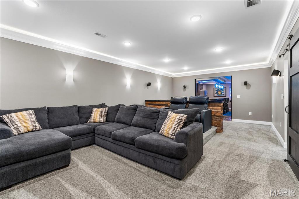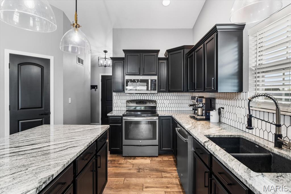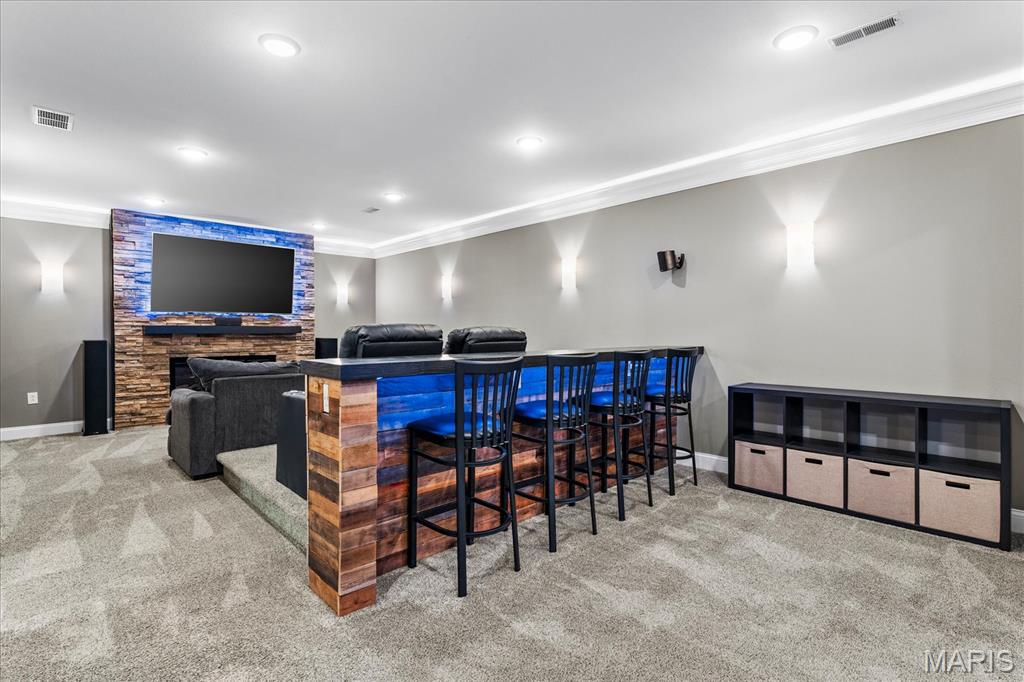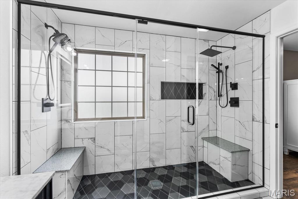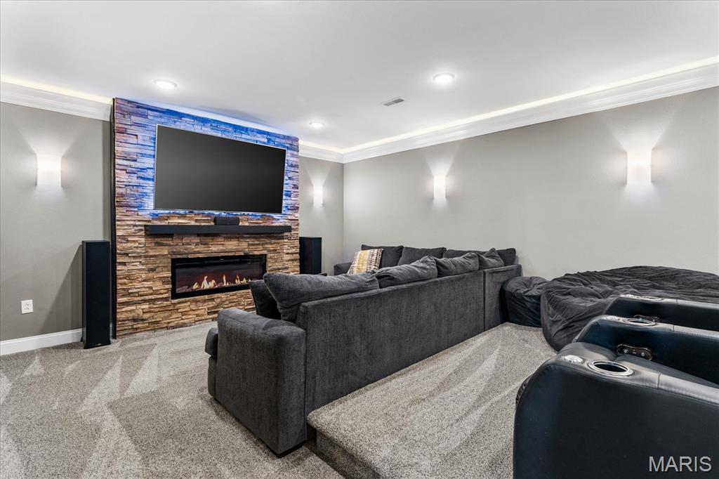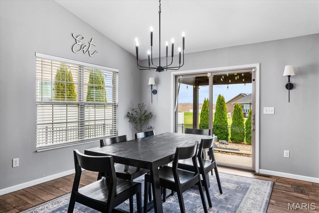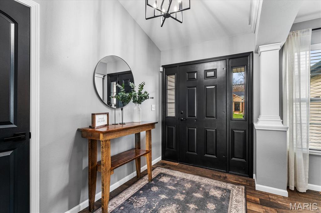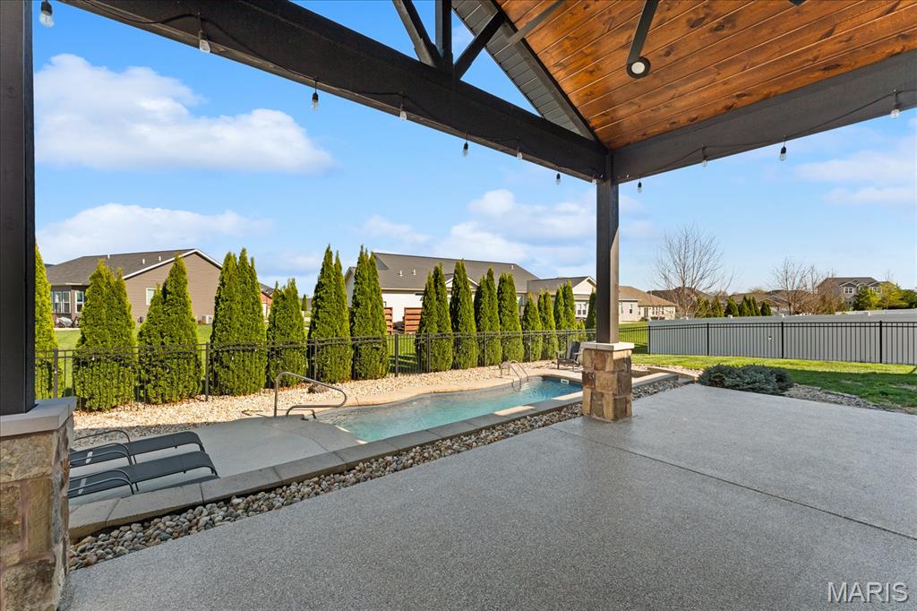Nestled in the heart of O’Fallon in the sought-after Windsor Estates subdivision, this exceptional, meticulously maintained one-owner home offers the perfect blend of luxury, comfort, and functionality. Step inside this custom Kappert Construction build to find planked ceramic tile flooring flowing throughout the main living areas, complemented by soaring vaulted ceilings and a stunning stacked-stone, two-way gas fireplace that seamlessly connects the living room and kitchen. The fully remodeled eat-in kitchen is a true showstopper, featuring granite countertops, a custom vertical hexagon tile backsplash, spacious pantry, and sleek stainless steel appliances. The primary suite serves as a peaceful retreat with vaulted ceilings and a luxurious, fully updated en-suite bath complete with new vanity, honeycomb tile flooring, and custom oversized tiled shower w/dual shower heads. The main level also includes a versatile formal dining room that can double as a home office, convenient main-floor laundry, two additional guest bedrooms, and a full bath. The finished lower level boasts a 9-foot pour and is designed to impress, offering a custom wet bar, spacious secondary living area with a raised floor for theater-style seating, a fourth bedroom, and a full bath—ideal for guests or extended living. Additional non-conforming space provides endless possibilities for a home gym, hobby area, or storage. Outside you'll find the best part of this exceptional property: your private backyard oasis featuring custom landscaping, an in-ground heated saltwater pool, an oversized, covered, concrete patio, and a built-in outdoor kitchen—perfect for entertaining year-round. Recent updates include (but are not limited to) a new water heater (2024) and architectural shingle roof and gutters (2025), providing added peace of mind. This home truly has it all—style, space, and exceptional upgrades throughout