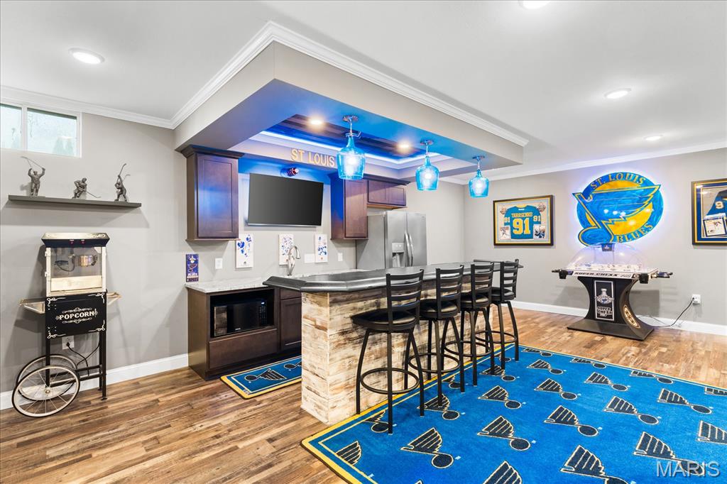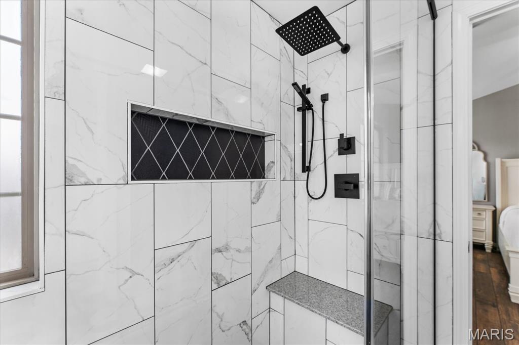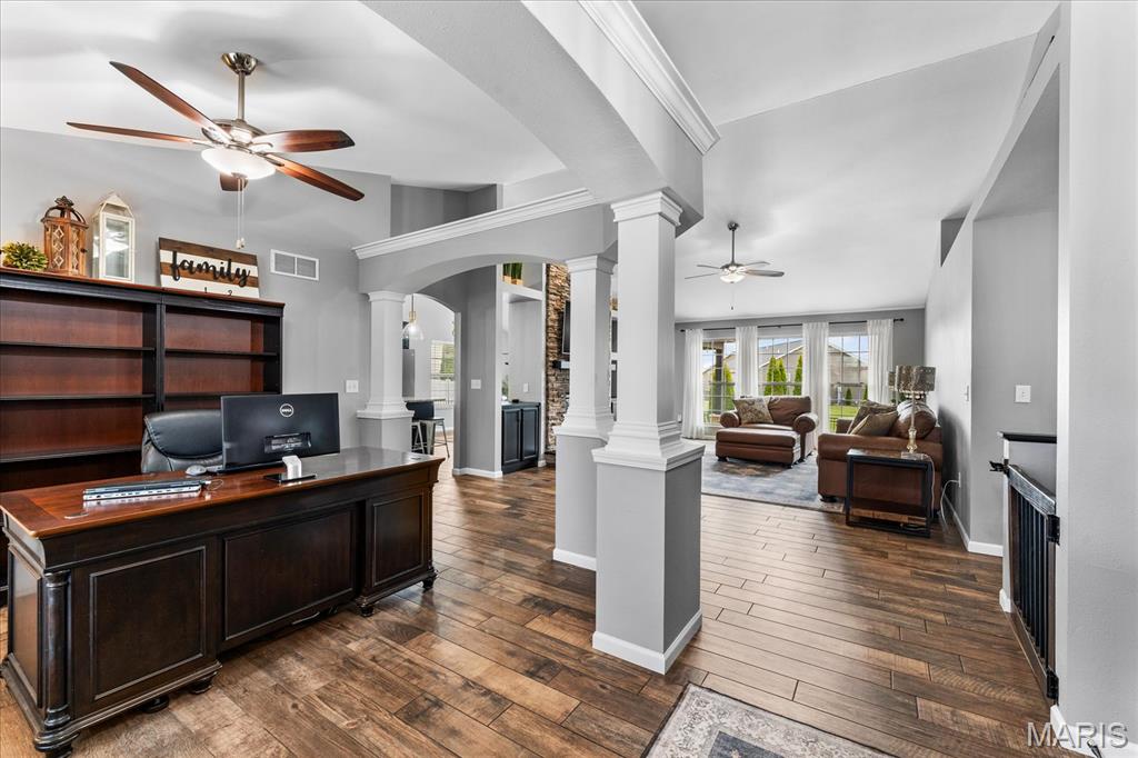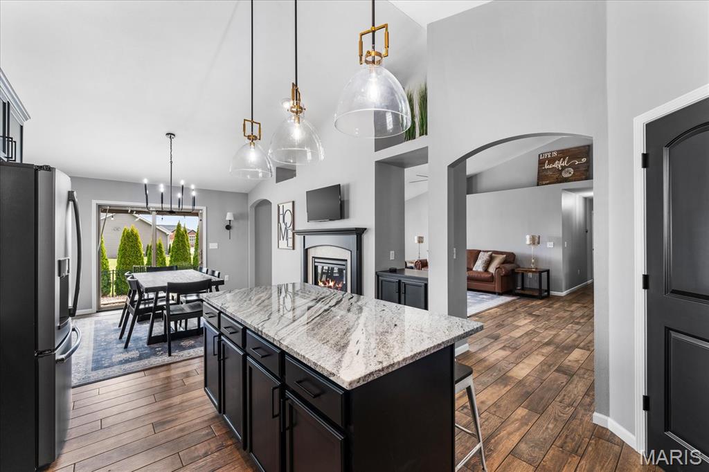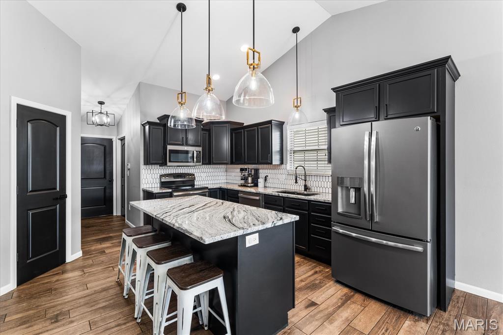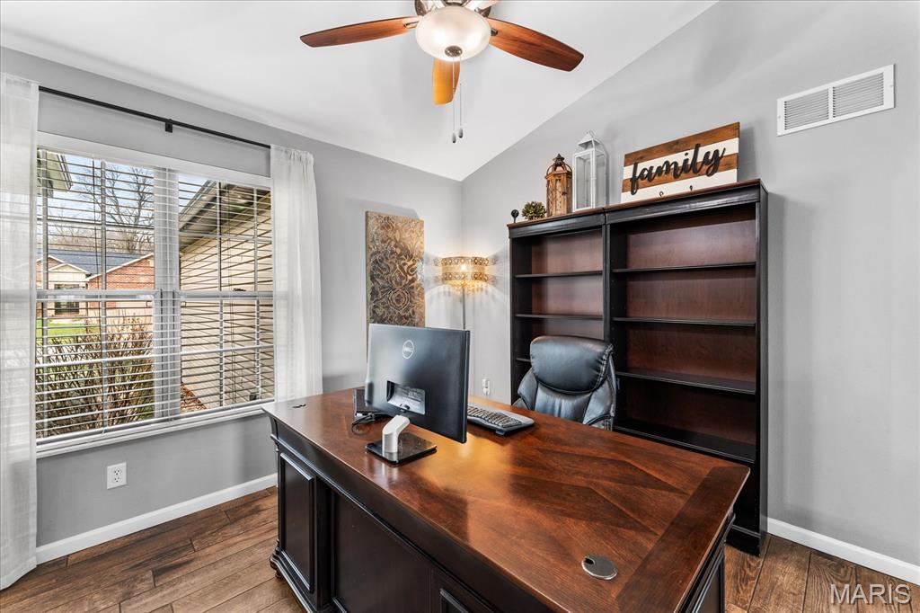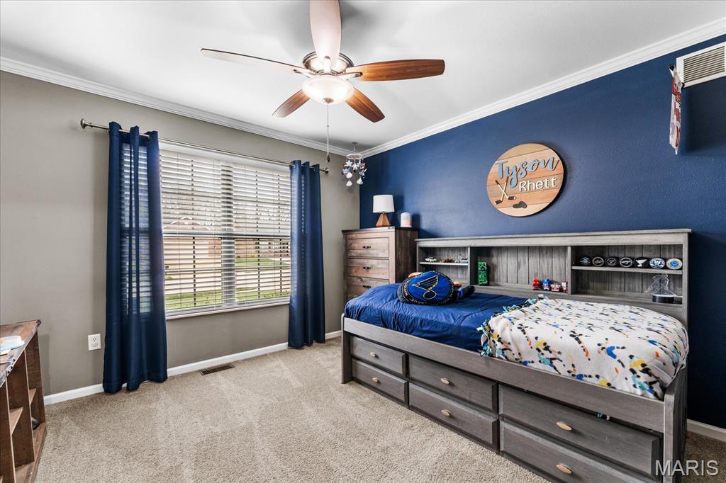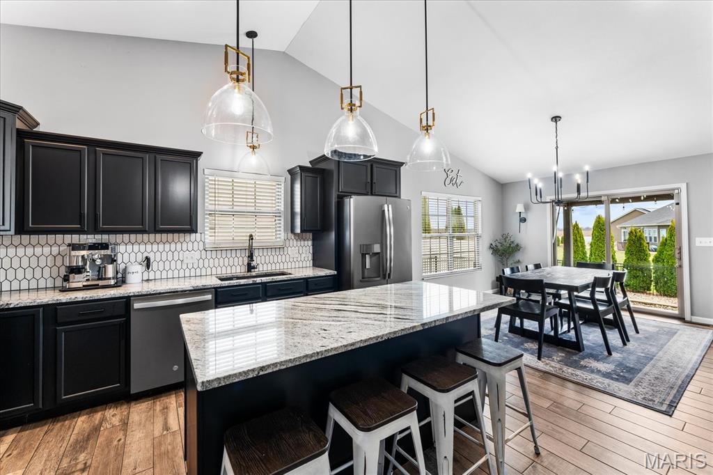 Nestled in the heart of O’Fallon in the sought-after Windsor Estates subdivision, this exceptional, meticulously maintained one-owner home offers the perfect blend of luxury, comfort, and functionality. Step inside this custom Kappert Construction build to find planked ceramic tile flooring flowing throughout the main living areas, complemented by soaring vaulted ceilings and a stunning stacked-stone, two-way gas fireplace that seamlessly connects the living room and kitchen. The fully remodeled eat-in kitchen is a true showstopper, featuring granite countertops, a custom vertical hexagon tile backsplash, spacious pantry, and sleek stainless steel appliances. The primary suite serves as a peaceful retreat with vaulted ceilings and a luxurious, fully updated en-suite bath complete with new vanity, honeycomb tile flooring, and custom oversized tiled shower w/dual shower heads. The main level also includes a versatile formal dining room that can double as a home office, convenient main-floor laundry, two additional guest bedrooms, and a full bath. The finished lower level boasts a 9-foot pour and is designed to impress, offering a custom wet bar, spacious secondary living area with a raised floor for theater-style seating, a fourth bedroom, and a full bath—ideal for guests or extended living. Additional non-conforming space provides endless possibilities for a home gym, hobby area, or storage. Outside you'll find the best part of this exceptional property: your private backyard oasis featuring custom landscaping, an in-ground heated saltwater pool, an oversized, covered, concrete patio, and a built-in outdoor kitchen—perfect for entertaining year-round. Recent updates include (but are not limited to) a new water heater (2024) and architectural shingle roof and gutters (2025), providing added peace of mind. This home truly has it all—style, space, and exceptional upgrades throughout